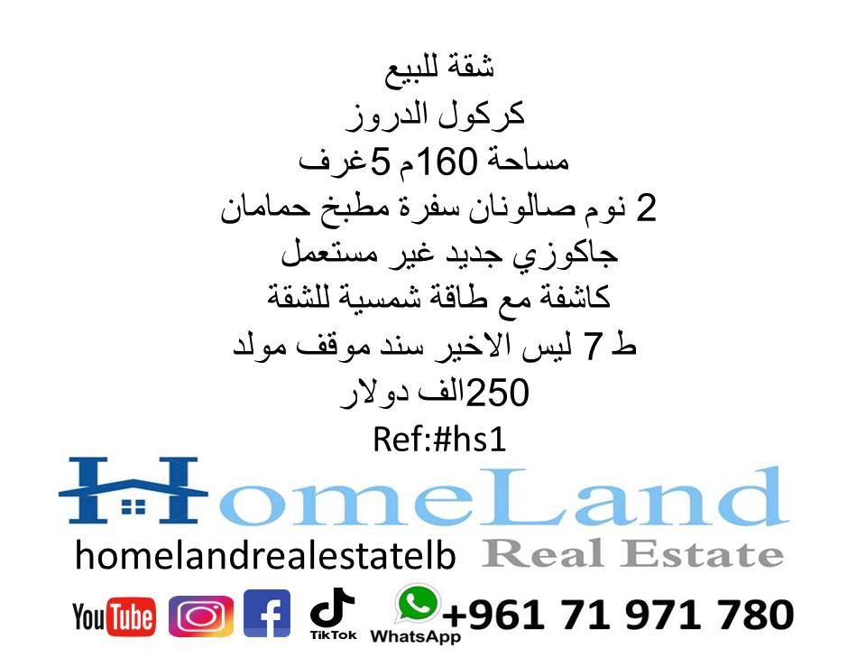 شقة للبيع كركول الدروز 2 نوم صالونان وسفرة مطبخ حمامان ط 7 بناء جيد 160 متر بئر موقف مولد 250 آلف دولار مكتب عقاري للتواصل تلفون