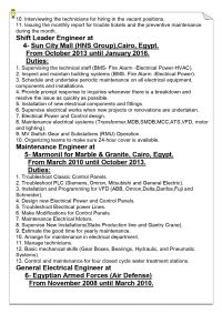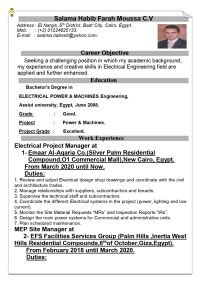 Seeking a Challenging Position, I am a high potential caliber, I am an Electrical Engineer, I have 16 years of experience in Electro - mechanical (MEP) construction and facility Management (Operation & Maintenance) Firm at, Military Project, Industrial Project (Factory) Mega Mall Project, Commercial & Administrative Buildings Projects and Residential Compounds Projects