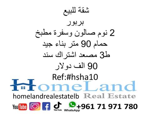 شقة للبيع بربور 2 نوم صالون وسفرة مطبخ وحمام 90 متر بناء جيد ط 3 مصعد اشتراك سند 90 ألف دولار مكتب عقاري للتواصل تلفون