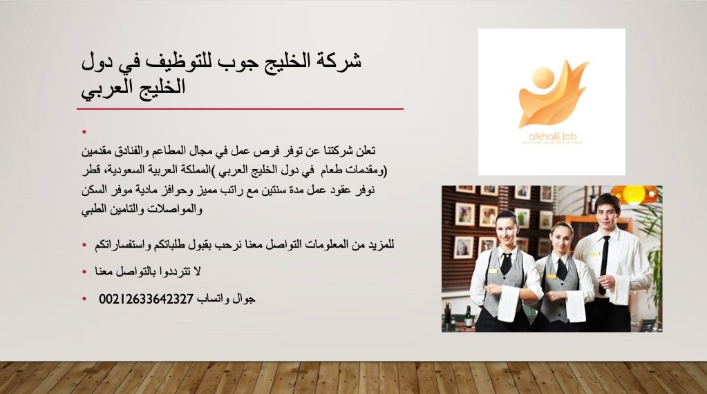 مطلوب للعمل في المملكة العربية السعودية نادلات يشترط خبرة في المجال راتب يحدد حسب الخبرة موفر السكن والمواصلات والتأمين الطبي للراغبين في التسجيل والمزيد من المعلومات التواصل معنا نرحب بقبول الطلبات والاستفسارات