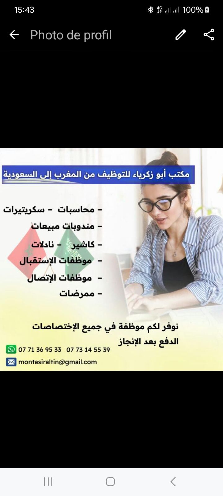 مكتب للاستقدام مع أبو زكريا للخدمات القنصلية نوفر لكم موظفات في جميع المهن وسكرتيرات لديهم للغة انجليزية ممتازة والعمل على الحاسوب بطريقة ممتازة وعاملات منازل وطباخات منزليات ومربيات اطفال وجليسات مسنات نادلات لجميع دول الخليج سرعة في الانجاز الدفع بعد الانجاز ولدين خدمات قنصلية المملكة العربية السعودية موعد البصمة وفحص معتمد وتفييز الدفع بعد الانجاز لا ارد على الذي لا يريد دفع أتعاب المكتب ومبلغ