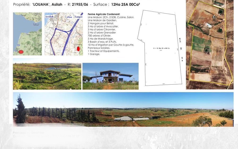 أرض للبيع مساحة 12 هكتار خاصة لمشروع فلاحي متنوع في منطقة فلاحية في شمال المغرب بين مدينة العرائش أصيلا ثمن البيع 250 ده للمتر م للمزيد من المعلومات اتصلوا بنا