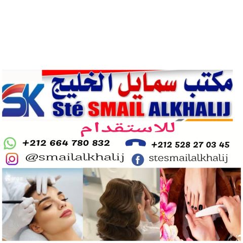 مكتب سمايل الخليج للاستقدام يوفر لكم من المغرب موظفين وموظفات الصالونات والمراكز من جميع التخصصات / خبيرات شعر / خبيرات اظافر وتنظيفات / خبيرات حمام مغربي ومساج / خبيرات تجميل (مكياج وميكروبلدينغ) لهم كفاءات عالية في المجال للطلب يرجى التواصل معنا عبر أرقامنا