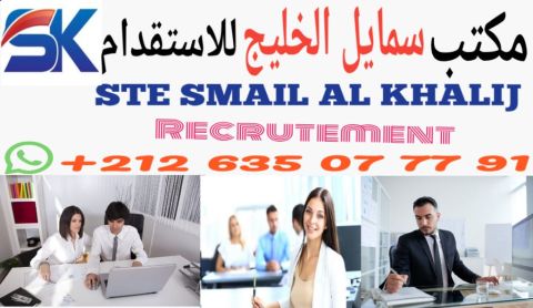 نحن شركة سمايل الخليج للتوظيف بدول الخليج نوفر لكم من المغرب سكرتيرات وسكرتير تنفيذي / محاسبات ومحاسبين / موظفات خدمة العملاء / موظفات علاقات عامة / كذلك نوفر مسوقات ميداني ومندوبات مبيعات / جميع الموظفين والموظفات يتميزون بمهارات عالية / للطلب أو الاستفسار يرجى التواصل معنا عبر أرقامنا