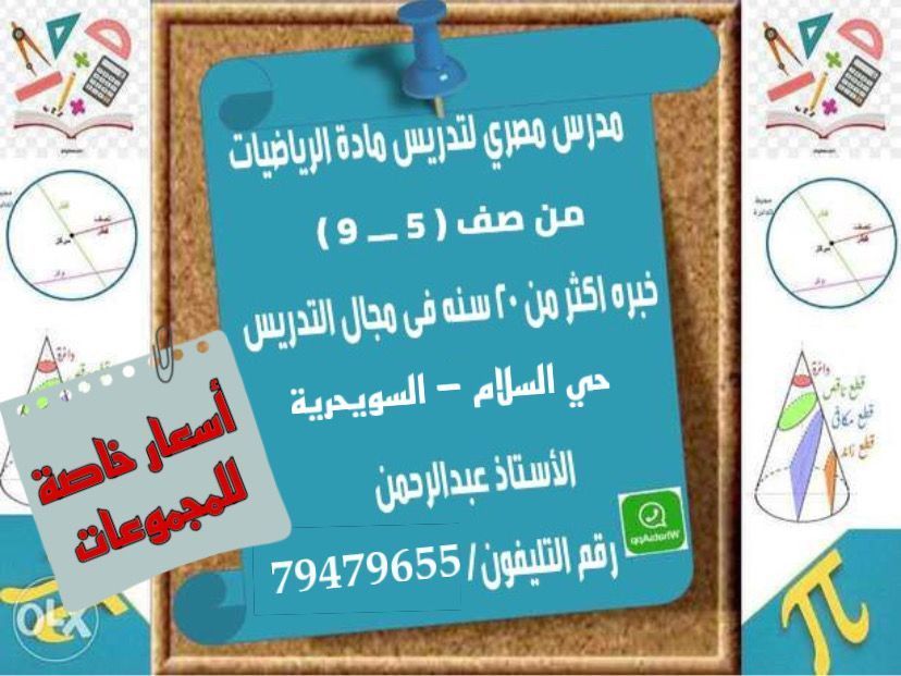 أ/ عبدالرحمن مدرس رياضيات مصري خبرة أكثر من 25 سنة في مصر والامارات وسلطنة عمان وحاليا مقيم في سلطنة عمان محافظة الداخليه نزوى - تنوف - كمه - حي السعد السويحريه - وأدى سميط - المصلى أسعار خاصه للمجموعات
