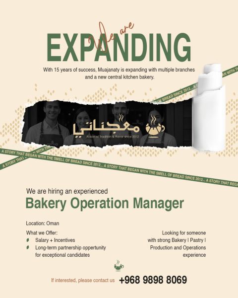 Brand with 15 years of proven success, is expanding across Oman with new branches and a modern central kitchen bakery. We are looking for an experienced Bakery Operations Manager to lead daily operations, ensure product quality, manage staff, and support our growth