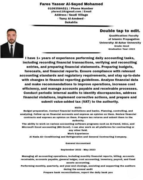 أخصائي تخاطب وتنمية مهارات يبحث عن عمل. حاصل على بكالوريوس علوم إعاقة تخصص إعاقة عقلية من جامعة الزقازيق، وحاصل على دبلوم إعداد أخصائي من جامعة عين شمس. حاصل على كورس ABAT من بورد QBA، ويمتلك خبرة عامين في المجال، وتم التعامل مع العديد من الإعاقات.