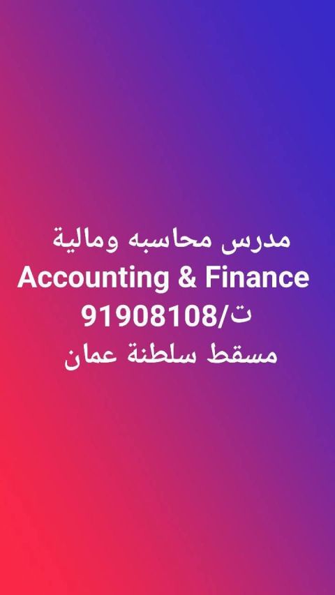 مدرس محاسبه ومالية (Accounting & Finance) خبرة طويله أكثر من 35 سنة. مستعد لاعطاء دروس خصوصيه فردية ومجموعات مصغرة وكورسات لطلبة المدارس والجامعات الوطنية والعربية والدولية. تلخيص الكتب وحل التمارين والمساعدة في الأبحاث ومشروعات التخرج وعمل التحليلات الماليه والاحصائيه والدراسات المصرفيه اللازمة. أسعار مناسبة ونتائج مضمونه بإذن الله