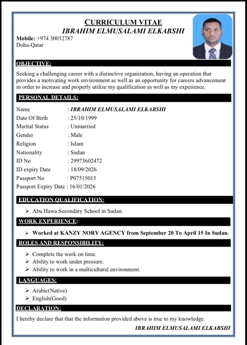 أنا اسمي إبراهيم عمري 27 مقيم في قطر ابحث عن عمل أنا من ذوي الاحتياجات الخاصه أريد تكوين نفسي أي شخص يمكن مساعدتي أكون شاكر جدا لكم