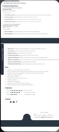 Please see my attached resume. I have experience in retail marketing, having worked for approximately three years in perfume sales. I possess excellent communication skills