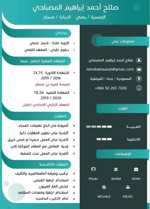 فني تبريد وتكييف بخبرة تزيد عن ست سنوات في تركيب وصيانة واصلاح مختلف أنظمة التكييف السبليت والشباك، بالاضافة الى تنفيذ أعمال التأسيس وتمديد خطوط المواسير بدقة عالية متمرس في لحام الفضة، كشف الأعطال المعقدة، ومعالجة التسريبات وضبط الشحنات لضمان أفضل أداء للاجهزة أسعى للانضمام الى فريق عمل محترف أساهم فيه بخبرتي الفنية وسر عتي في الانجاز وجودة التنفيذ لتحقيق أعلى مستويات الكفاءة والرضا للعملاء