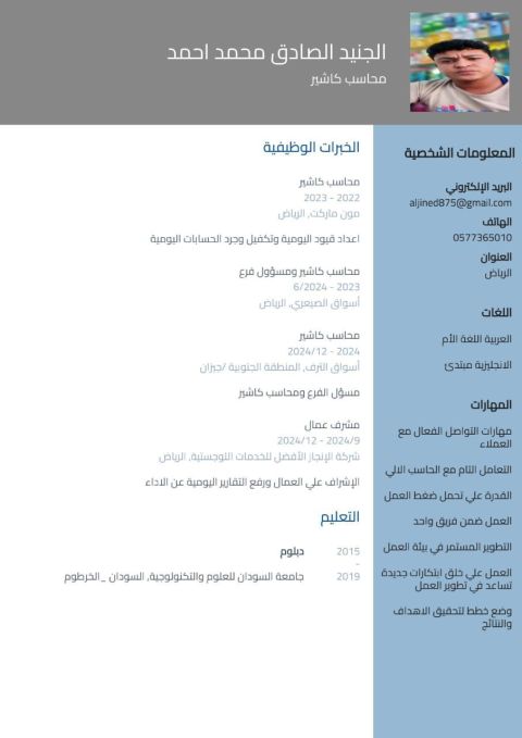 محاسب عام - خبرة في السعودية خبرة قوية في المحاسبة العامة، تسجيل القيود اليومية، المبيعات، المشتريات والمصروفات، متابعة حسابات العملاء والموردين، تسوية حسابات البنوك، عمل مسيرات الرواتب، عمل الاقرار الضريبي، التقارير المالية، وإدارة الأنظمة المحاسبية وانشاء شجرة الحسابات عليها. اجادة Excel وERP، دقة عالية في المتابعة وتحليل البيانات، والالتزام في العمل