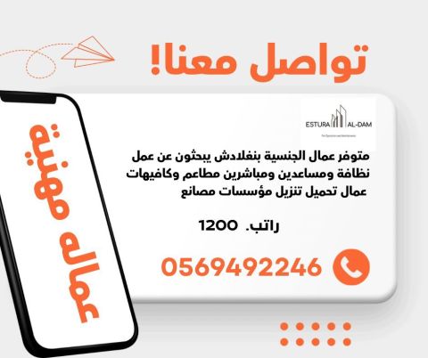 الجنسية بنغلادش إقامة قابلة للنقل عمال نظافة ومساعدين ومباشرين مطاعم وكافيهات فترة تجربة 2 أسبوع توفير السكن الراتب 1200 و200 ريال اعاشة نقل كفالة لأول مرة نقل كفالة بعد فترة التجربة