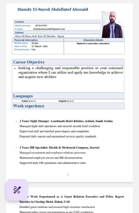 مشرف عمليات محترف ابحث عن فرصه في جدة، لا تتردد في الاتصال بي