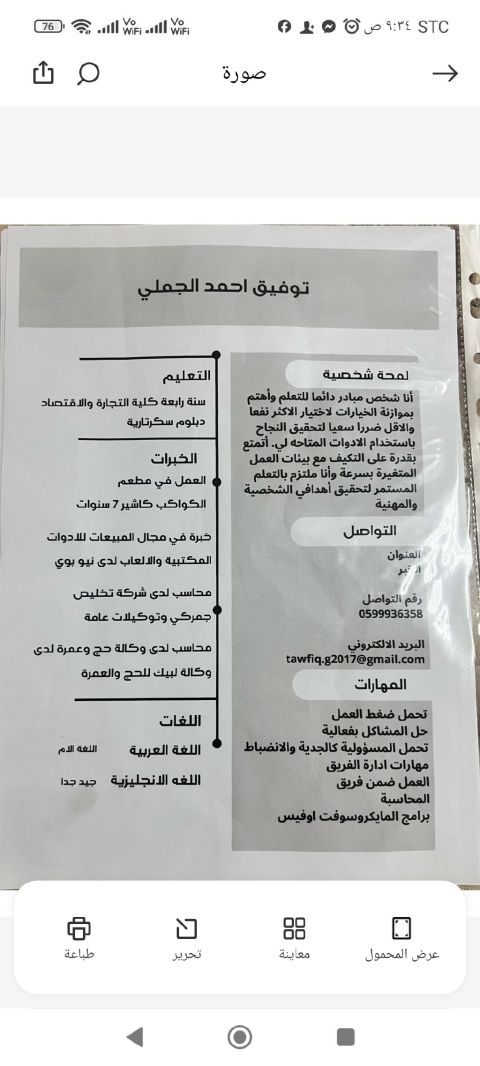 الاسم توفيق العمر 35 سنة الجنسية يمني صنعاء ابحث عن عمل في مجال الادارة وعندي خبرة مجال الكاشير والحسابات والادارة 10 سنين شهادة صحيه سارية جديدة وإقامة مؤسسة سارية والسيفي تبعي بصورة الاعلان