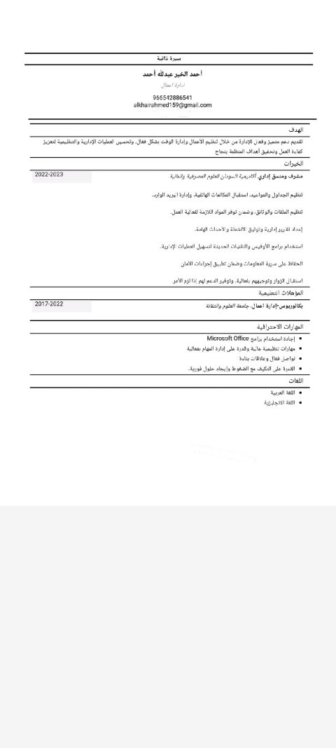 LL. B with 5 + years administrative & legal support experience in Egypt & KSA. Proficient in customer service, document/ contract management, legal compliance, Saudi platforms (Muqeem, Qiwa, etc. official correspondence, meeting coordination, and reports/ presentations (MS Office + Canva) Strong organization, flexibility, time management & adaptability. Jeddah resident - transferable Iqama