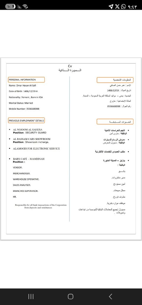 Looking for a suitable job. Yemeni nationality, serious and committed to work. I have a valid residence permit and a valid driving license. Punctual, reliable, and well - mannered. Ready to start work immediately