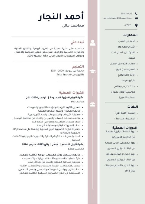 مدير حسابات ابحث عن عمل خبرة أكثر من 15 عام، التفاصيل مرفقة في CV