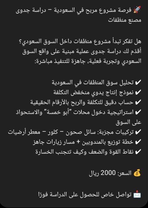 دراسة جدوى مصنع منظفات دراسة مشروع منظفات السعودية مشروع مصنع منظفات مربح دراسة منظفات السوق السعودي مصنع منظفات خطة جاهزة