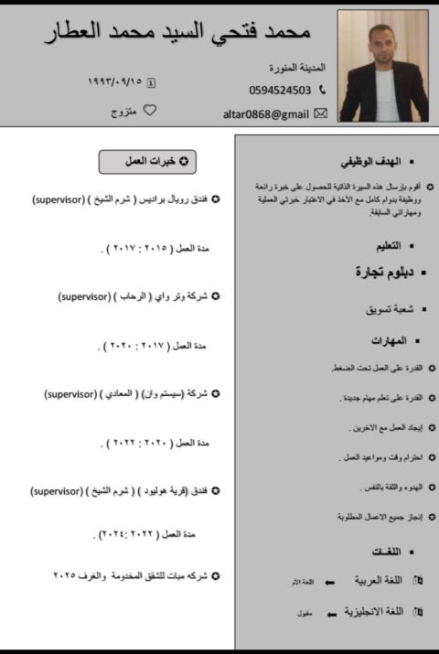 ابحث عن عمل اشراف على عمال في شركة تنظيف أو غيرها عملت في شركة تنظيف كمشرف فريق في شركة رائدة في مجال التنظيف والصيانة لسنوات عديدة. ولدي خبرة في تدريب وتأهيل العمال على العمل وتقديم أفضل جودة. خبرة في إدارة الموقع لفريق أو أكثر. خبرة في إدارة الجودة وتقديم أعلى مستوى. القدرة على التخاطب والتعامل مع العملاء بما يحقق رضاهم. المعرفة الكاملة بجميع المنظفات بأنواعها واستخداماتها