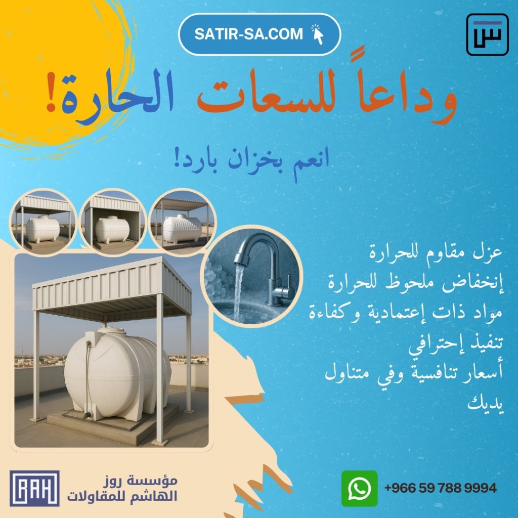 مظلة الخزان بين أيديكم حماية وعزل خزانات المياه في الدمام وجميع أنحاء المنطقة الشرقية. بالاضافة الى أغطية خزانات المياه، نقدم أيضا العزل الحراري العاكس بلفائف الصوف الصخري لجسم الخزان، والعزل الحراري والمائي بلفائف العزل للأسقف والأرضيات. نرجو منكم الذهاب لموقعنا الالكتروني الموضح بالصورة للإطلاع على أنواع مظلات (أغطية) الخزانات والحصول على عرض تقديري وفوري للخدمة المطلوبة بالاضافة لخدماتنا الأخرى
