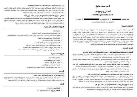 متاح خدمة كتابة CV احترافي بصيغة ATS وفقا لمعايير أكبر الشركات في المملكة العربية السعودية. تصميم بسيط وواضح يسهل قراءة ه آليا ومريح للعين البشرية. سعر الخدمة 50 ريال سعودي. استلام أل CV في نفس اليوم. عرض خاص لغير الموظفين وغير المقتدرين سعر الخدمة 20 ريال فقط لا غير ابعت رسالة واتساب وهرد عليك في أقرب وقت