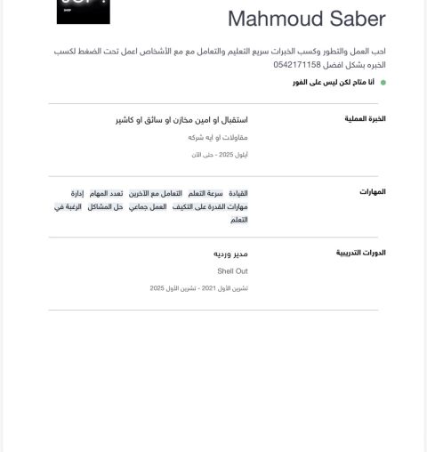 ابحث عن عمل سائق أو أي عمل عندي خبرة في تجارة ولمتاجر الذي عنده عمل ونقل كفالة يتواصل عليه