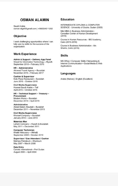 مصطفى 35 عام لي سبع سنوات في السعودية لدي خبرة جيده في عدة مجالات أكثرهم مجال الاستقدام خمس سنوات عندي خبرة أيضا في التسويق والمبيعات والمشتريات والسكرتارية والأعمال المكتبيه وخدمة العملاء ولدي رخصة قيادة