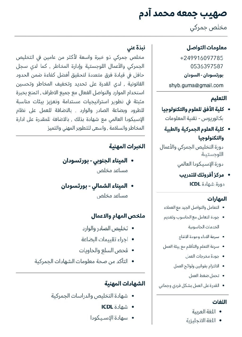 شاب سوداني استقدام جديد خريج تقنية معلومات وكلية التخليص الجمركي خبرة في التخليص الجمركي ويمتلك شهادات خبرة، بحث عن وظيفة في مكتب تخليص جمركي