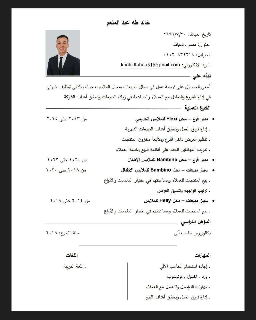 ابحث عن وظيفة في مجال المبيعات في المملكة العربية السعودية، لدي خبرة تتجاوز 10 سنوات في مبيعات الملابس والأكسسوارات، حيث عملت في عدة متاجر منها موظف مبيعات ثم مدير مبيعات. امتلك مهارات عالية في التعامل مع العملاء، اقناع الزبائن، تحقيق التارجت الشهري، وتنظيم العمل داخل المتجر. أجيد استخدام الكمبيوتر وبرامج الأوفيس، واعمل بروح الفريق وتحمل ضغط العمل