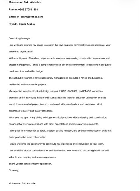 مهندس مدني سوداني، خبرة أكثر من 5 سنوات في المقاولات والإنشاءات والصيانة والتشغيل. خبرة كمهندس موقع، جاهز للعمل فورا