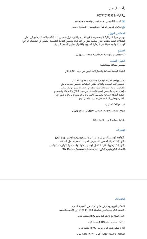 Mechanical Engineer Seeks Job - Bachelor's degree in Mechanical Engineering - 5 years of experience in mechanical maintenance - Experience in machinery maintenance in production - Proficient in SAP (maintenance planning and scheduling) AutoCAD, SolidWorks, MS Officeand Skilled in computer - aided manufacturing and design and CNC programming and g Code