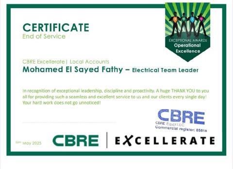 مشرف كهرباء. باور كنترول في مجال الصيانة علي كورس كهرباء صيانة معدات كهرباء مستوى أول من معهد تدريب الكوادر STI - حاصل علي شهادة فني التعامل مع الحريق - حاصل علي شهادة اسعافات أولية - حاصل علي قياس مهارة من الدولة بعمل الكهرباء - يوجد رخصة قيادة سيزر ومان لفت - يوجد خلفية كبيرة في مجال التكيفات والتعامل معها - يوجد خلفية في الفاير - كورس كهرباء شركة SCHNEIDER مستوى أول وثاني