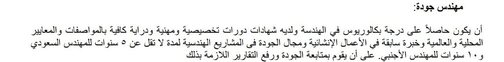نقل فوري فقط، مطلوب مهندسين جودة في المنطقة الشرقية في الاحساء حي البندرية للاشراف على مشروع أنابيب وصرف مياه وبنية تحتية خبرة عالية لا تقل عن 10 سنوات بالتخصص التالي مهندس جودة