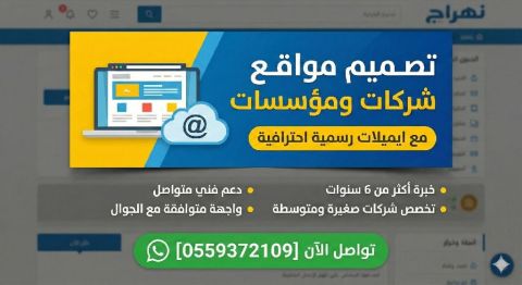 هل لديك مؤسسة أو شركة وترغب في الظهور بمظهر احترافي أمام عملائك نقدم لك خدمات تصميم المواقع الالكترونية والحلول الرقمية المتكاملة، متخصصون في دعم الشركات الصغيرة والمتوسطة لنقل أعمالهم الى مستوى احترافي. لماذا تختارنا خبرة تتجاوز 6 سنوات في السوق السعودي والخليجي. تخصص دقيق في احتياجات الشركات والمؤسسات الناشئة. سرعة في التنفيذ ودقة في المواعيد. خدماتنا تشمل 1