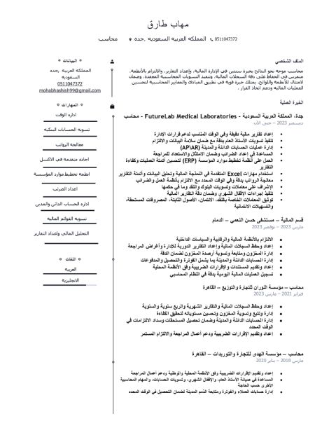 Fresh Graduate Accountant Seeking Job in Saudi Arabia، Accounting graduate with a Bachelor’s degree in Accounting. Good knowledge of accounting principles and Microsoft Excel. Motivated, quick learner, and available to start immediately