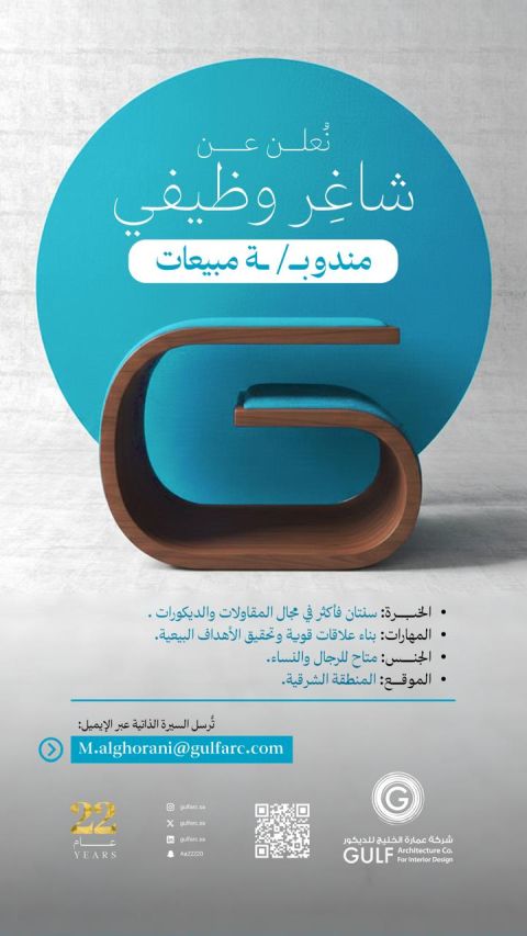 مطلوب مندوب مبيعات خبرة في مجال المقاولات والديكور متاح للرجال والنساء العمل في الاحساء / المبرز والخبر