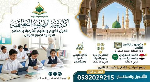 أكاديمية الصفوة التعليمية لجميع المراحل ابتدائي ومتوسط وثانوي. طريقك للتفوق بخطوات واثقة نحو القمة. شرح مبسط ومتميز لجميع المراحل. نخبة من المعلمين أصحاب الخبرة. متابعة مستمرة واختبارات دورية. تأسيس قوي ورفع مستوى الطلاب. بيئة تعليمية منظمة ومحفزة لا. تضيع الفرصة مكان ابنك بين الأوائل يبدأ من هنا للتواصل والحجز
