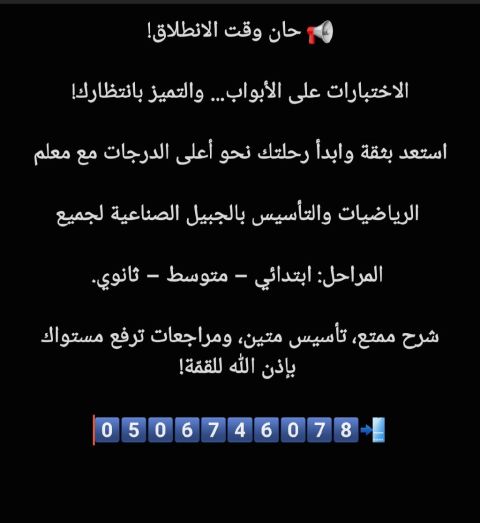 مدرس رياضيات خصوصي في الجبيل الصناعية لجميع المراحل التعليمية ابتدائي - متوسط - ثانوي