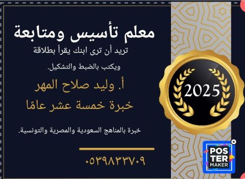 معلم تأسيس ومتابعة، تريد أن ترى ابنك يقرأ ويكتب بالضبط والتشكيل. معنا ابنك سيتقدم