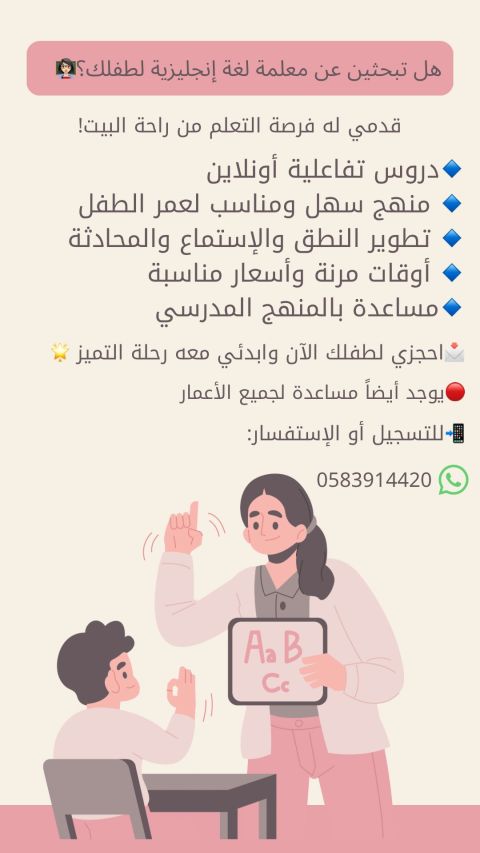 معلم تأسيس لغة عربية ولغة انجليزية ورياضيات وأيضا قدرات لفظي ومتابعة كل المواد حضوريا في الرياض أو أون لاين