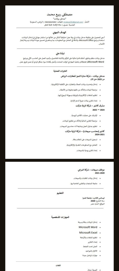 عندي خبرة بادخال البيانات والعمل علي برامج الاكسل واللوورد والميكرسوفت وخبرة في مجال المحاسبة والكاشير