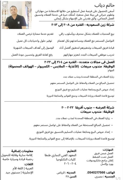 سيلز مستعد للعمل في أي وظيفة متواجد في الدمام ومستعد للتنقل الى أي مكان داخل المملكة