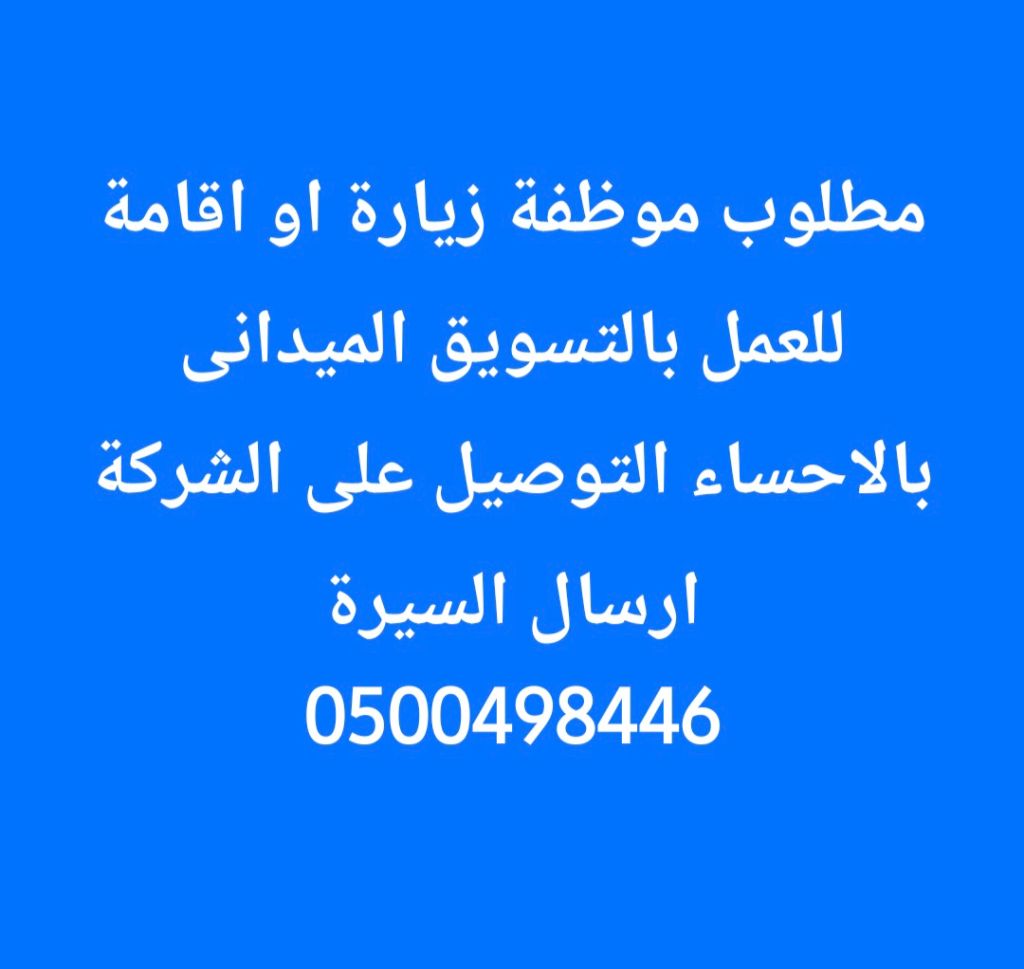 مطلوب موظفة للتسويق الميداني زيارة أو إقامة في الاحساء الهفوف توفر المواصلات ارسال السيرة