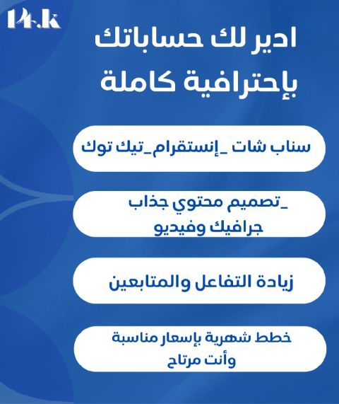نقدم كل خدمات التسويق الالكتروني بداية من وضع خطة تسويق الكتروني تناسب مشروعك وتميز العروض اللي تلفت انتباه العميل المحتمل + حملات اعلانية ممولة علي كل وسائل التواصل الاجتماعي بخصم 50، تصميمات الجرافيك زيارات وتغطيات المشاهير والبالوقر مع وضع سيناريو للمشاهير والمؤثرين يجذب العميل لنشاطك التجاري، تصوير فيديوهات احترافية، زيادة متابعين، ملحوظة اشتراك الباقات الشهرية شهر + هدية