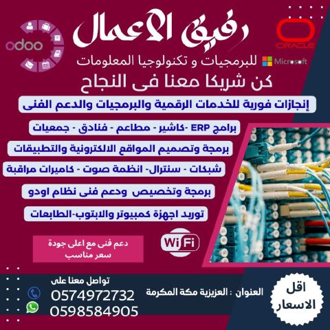 نحن شركة متخصصة في تنفيذ جميع أعمال أنظمة التيار الخفيف مثل أنظمة الصوت - شبكة الانترنت - كاميرات المراقبة - أنظمة انذار الحريق - الانتركوم - اجهزة البصمة - أنظمة السنترال كما يوجد قسم متخصص لتكنولوجيا المعلومات ويشمل جميع البرامج المحاسبية ونظام حجز الفندق ونظام برمجة كروت الغرف الفندقية وأنظمة الكاشير المطاعم والبقالة والمستودعات وتصميم المتاجر الالكترونية على شوبي فاي والأودو