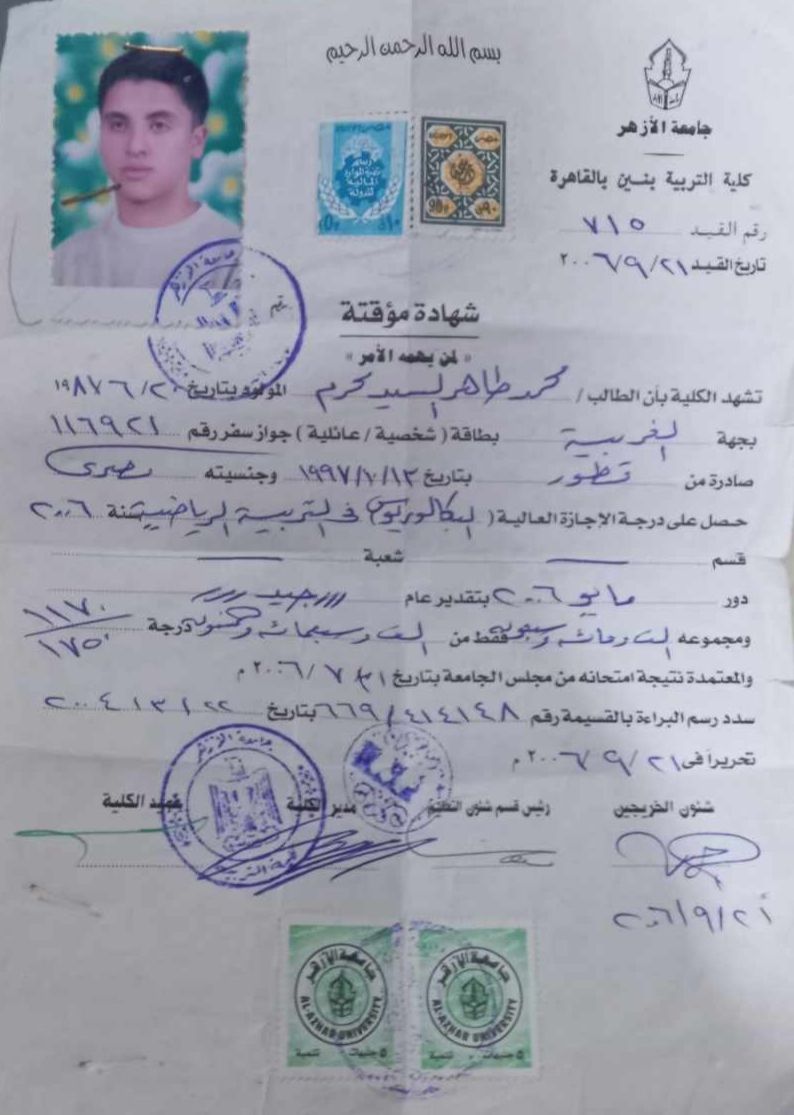 حاصل علي بكالوريوس تربية رياضية جامعة الأزهر في القاهرة خبرة في مجال التدريس والتدريب الرياضي