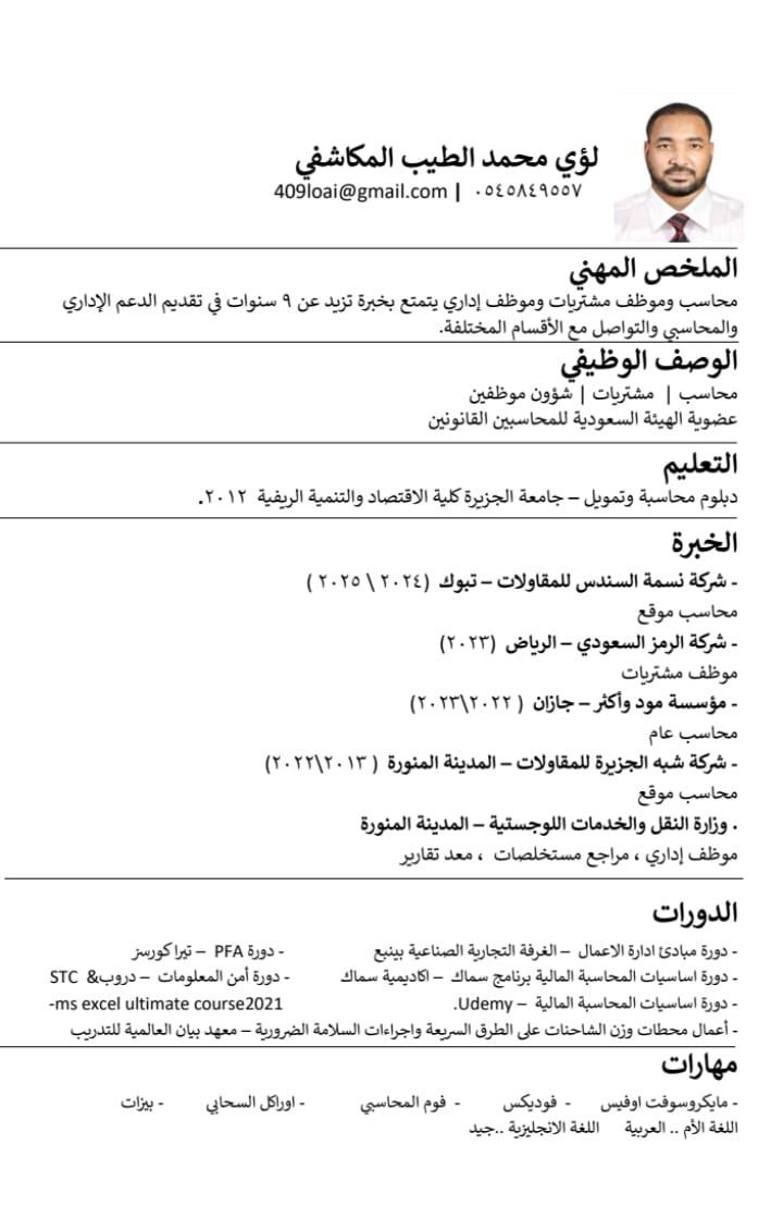 ابحث عن عمل محاسب ومشتريات خبرة في شركات المقاولات