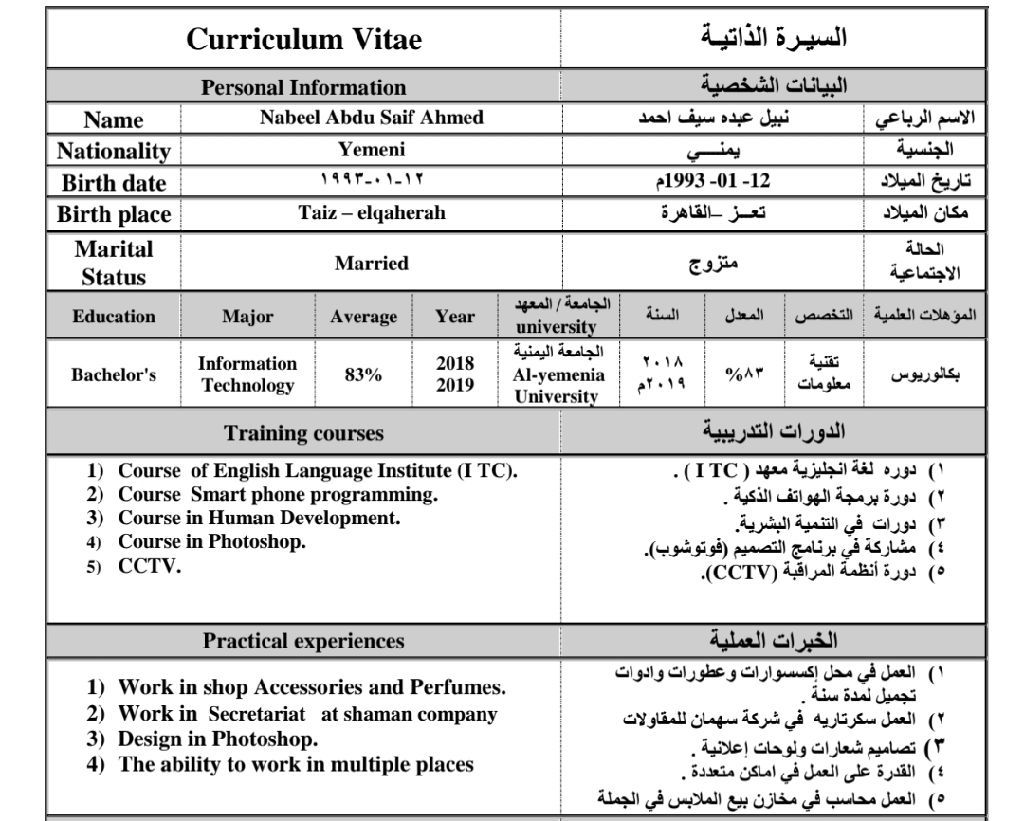 ابحث عن عمل مدخل بيانات أو كاشير أو محاسب التخصص العملي تقنية معلومات IT (الجنسية يمني)