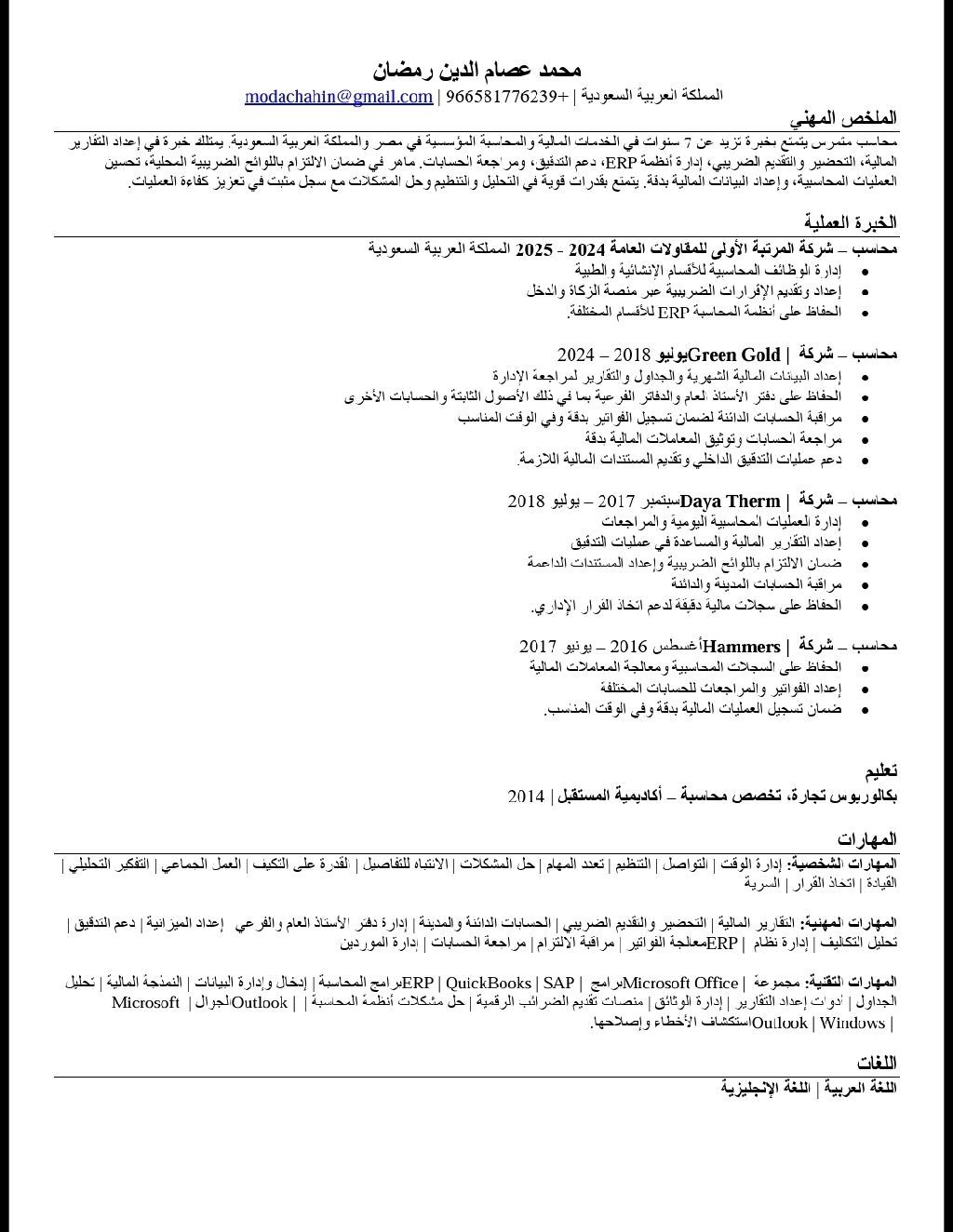 محاسب متمرس يتمتع بخبرة تزيد عن 7 سنوات في الخدمات المالية والمحاسبة المؤسسية في مصر والمملكة العربية السعودية. يمتلك خبرة في اعداد التقارير المالية، التحضير والتقديم الضريبي، إدارة أنظمة ERP، دعم التدقيق، ومراجعة الحسابات. ماهر في ضمان الالتزام باللوائح الضريبية المحلية، تحسين العمليات المحاسبية، واعداد البيانات المالية بدقة